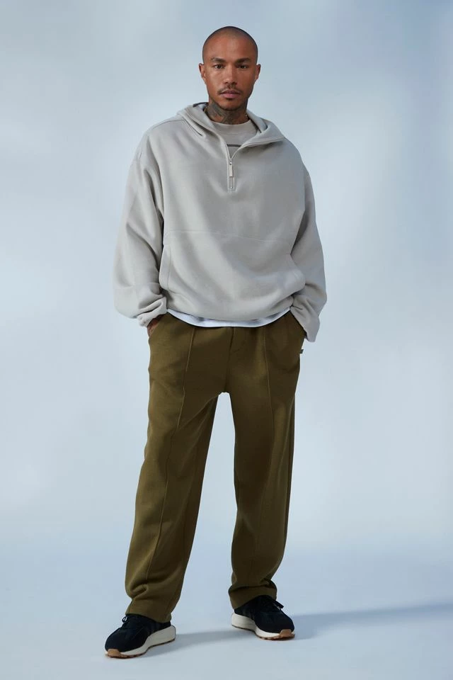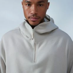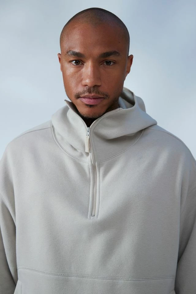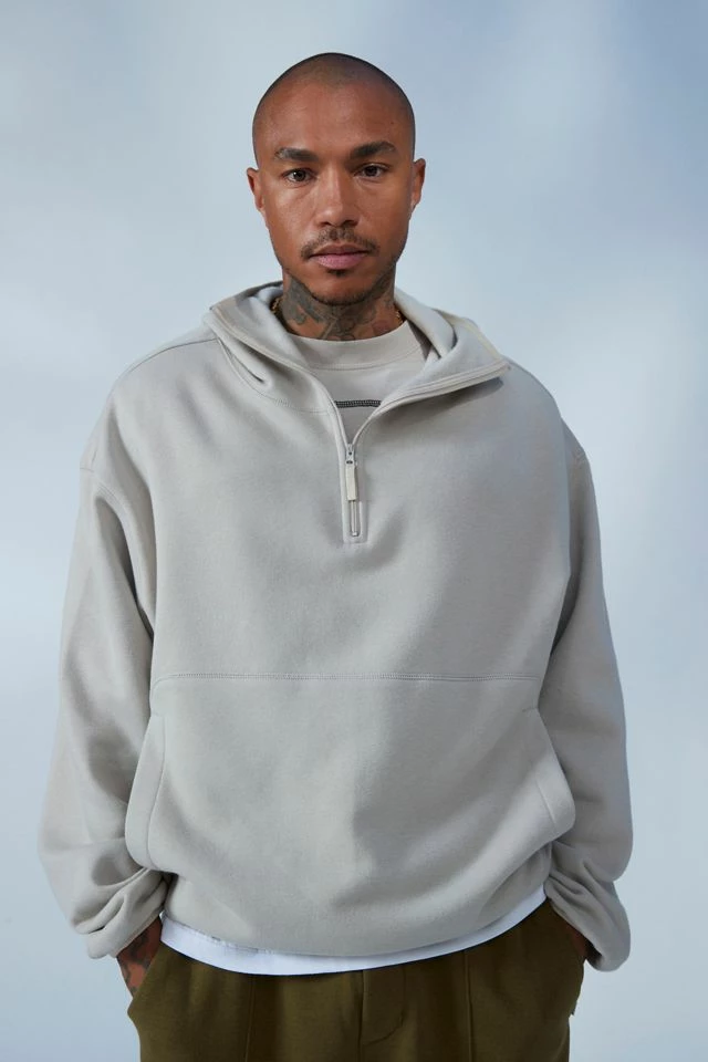 Sweatshirt by Standard Cloth in a boxy fit & shrunken silhouette. Fitted with a full-coverage hood and partial zip at the front. Complete with an elastic hem. Urban Outfitters exclusive.