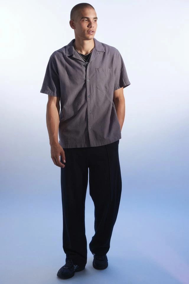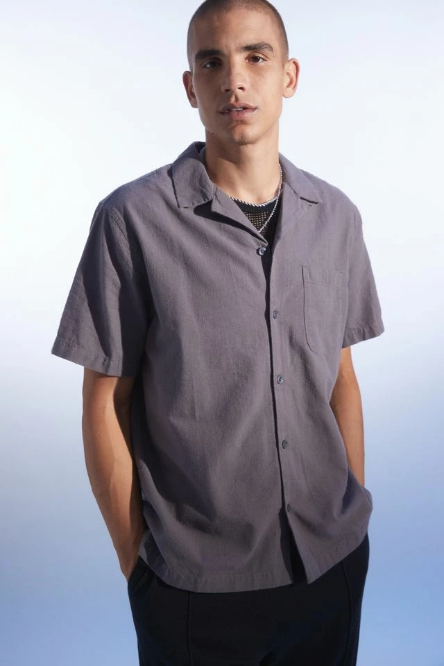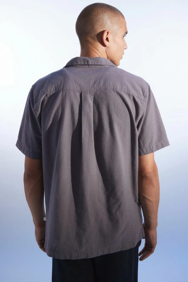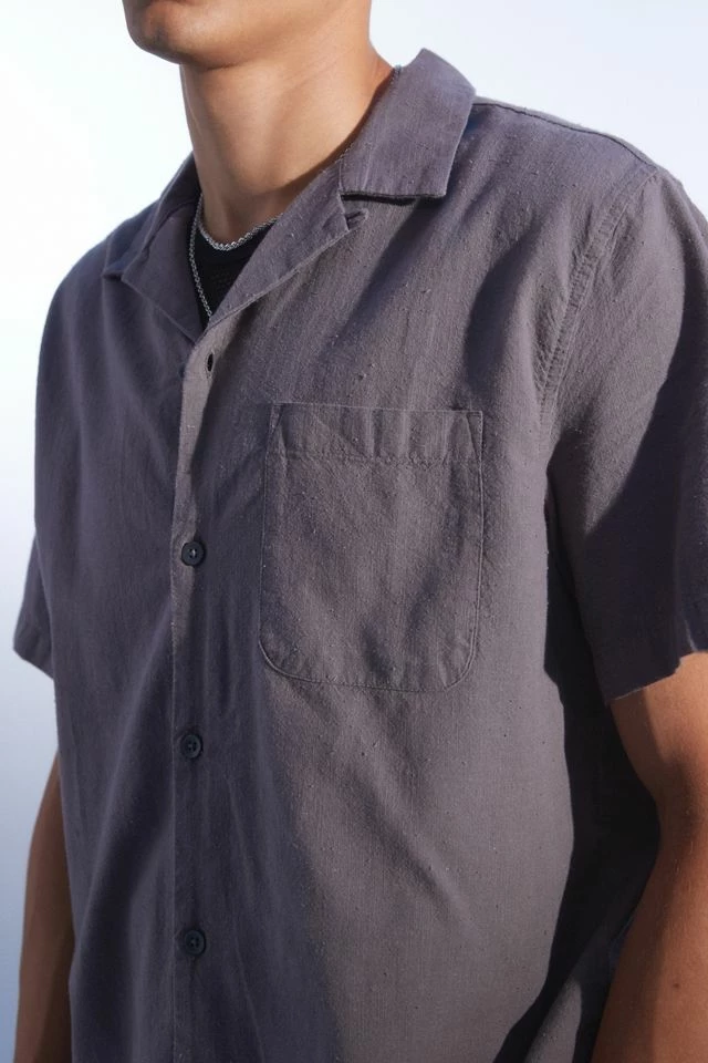 Textured cotton button-down shirt by Standard Cloth. Regular fit short sleeve shirt topped with a left chest pocket and fitted with a foldover tab collar. Urban Outfitters exclusive.