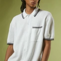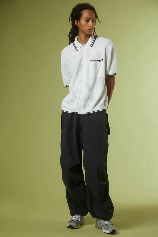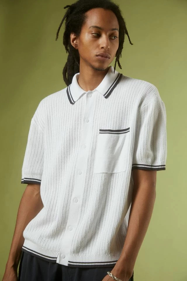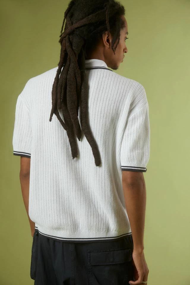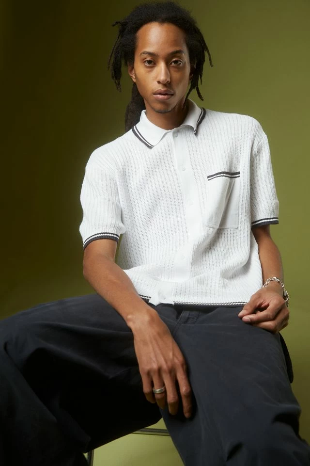 Knit short sleeve polo shirt by Standard Cloth cut in a standard fit an topped with a left chest pocket. Urban Outfitters exclusive.