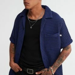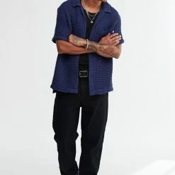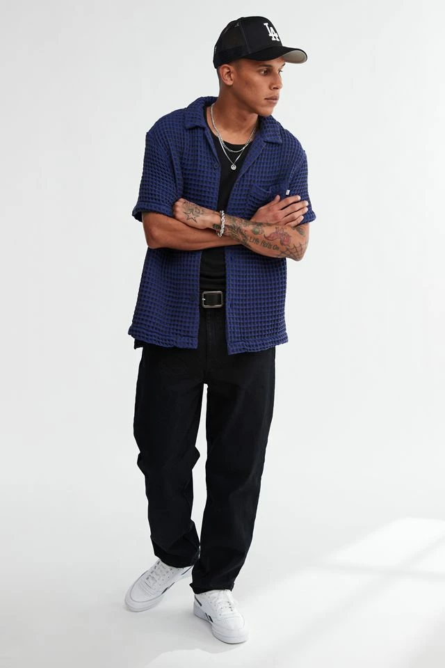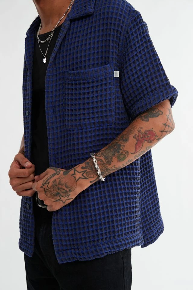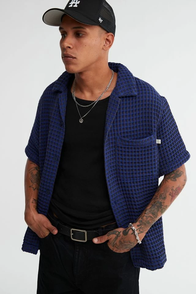 Textured button-down shirt by Standard Cloth in a cotton blend fabrication and fitted with a tab collar. Only at Urban Outfitters.