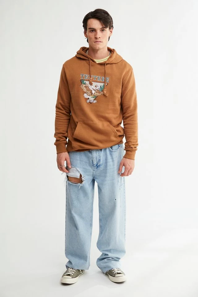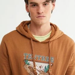 Pullover sweatshirt by tentree with an adjustable hood and kanga pocket. Cotton blend hoodie with a graphic printed at the front. Finished with ribbed knit trims.