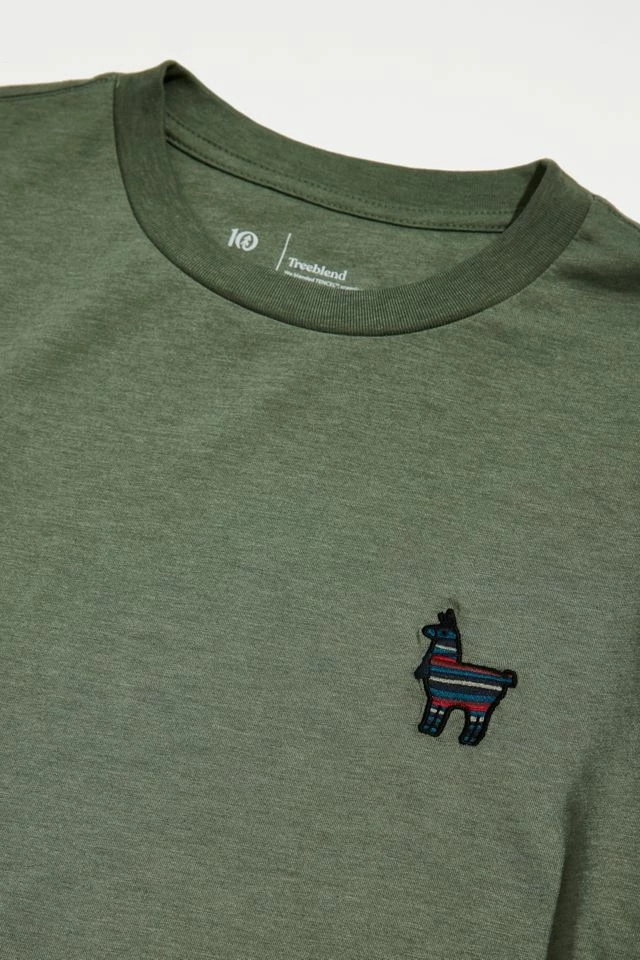 T-shirt by tentree topped with an embroidered llama motif at the left chest. This cotton jersey tee is cut in a standard fit with short sleeves and a ribbed knit crew neck.