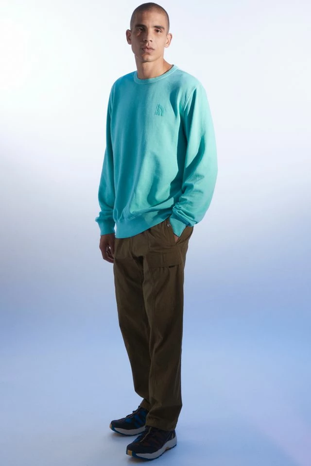 Classic crew neck sweatshirt by The North Face with a garment dye wash finish for a lived-in vintage look and feel. Finished with a tonal logo at the left chest and fitted with ribbed knit trim.