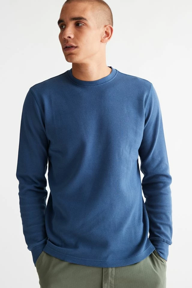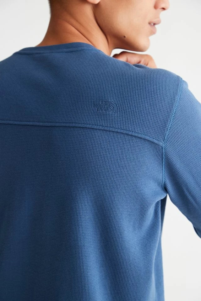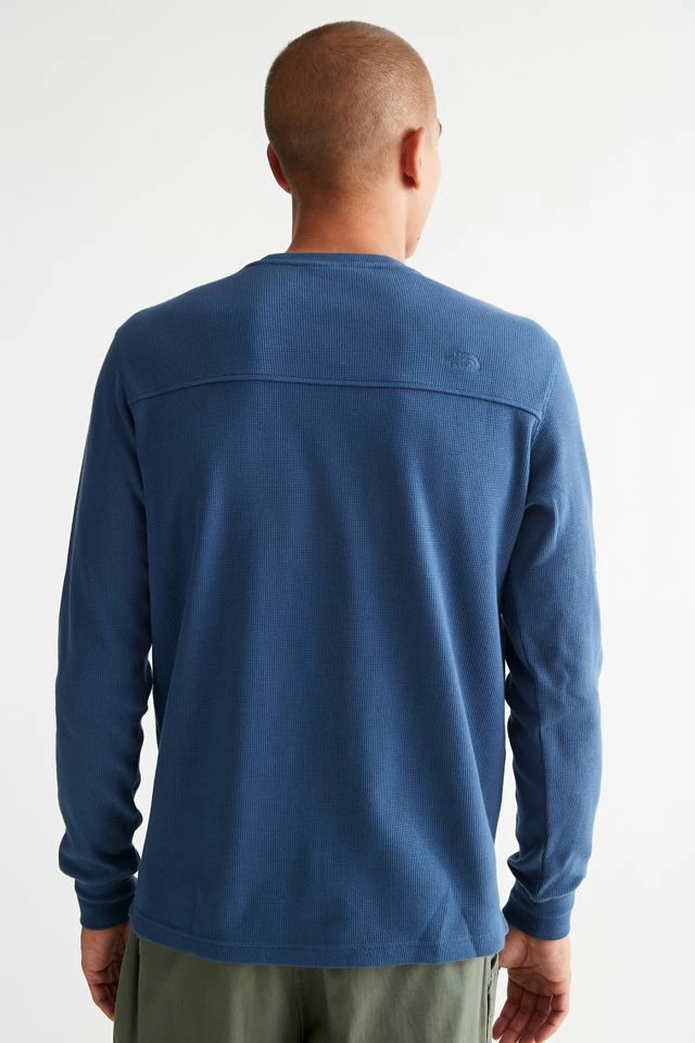 Pullover crew neck sweatshirt by The North Face. Waffle texture fabrication in a pullover style & fitted with ribbing trims at the cuffs and crew neck.