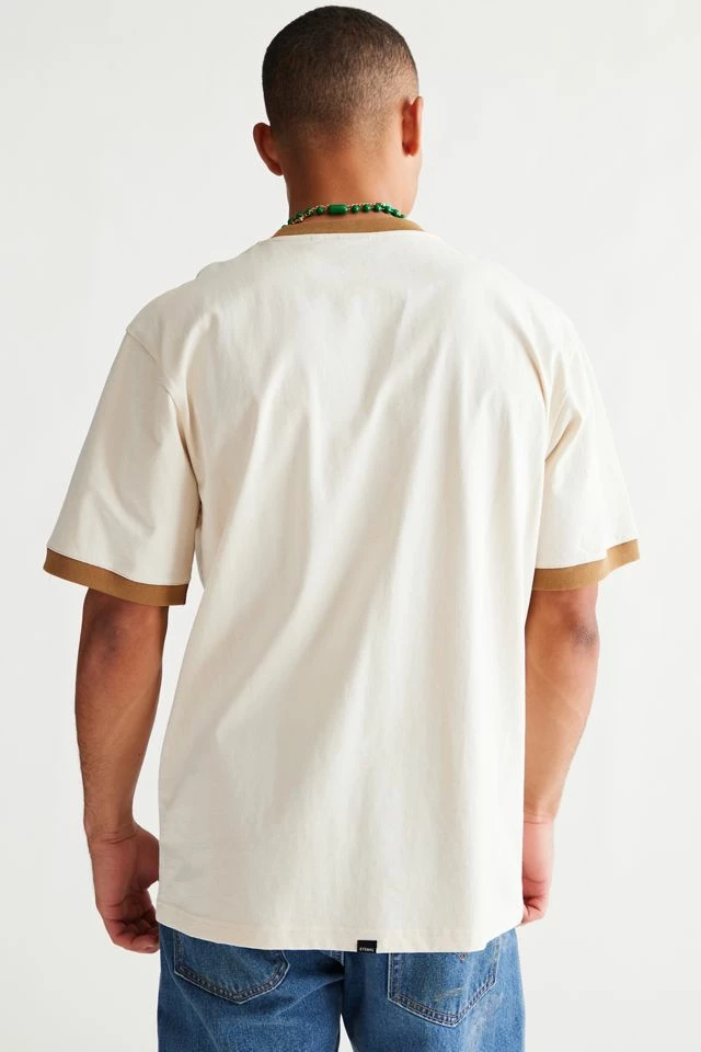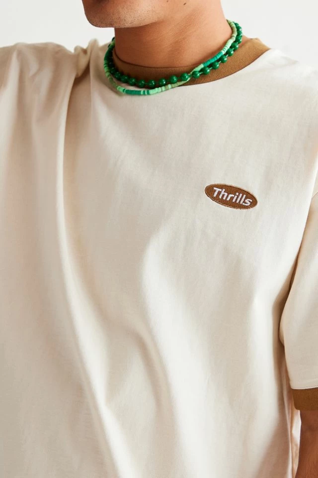 Oversized fit ringer t-shirt by THRILLS. Cotton jersey tee in a relaxed silhouette with logo text at the left chest and contrast ribbed knit trims.