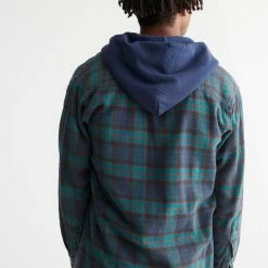 Vintage flannel shirt updated by Urban Renewal. Plaid pattern shirt fitted with a hood. This modern design was created by Urban Renewal from unique vintage and deadstock items found around the world. Though similar in style to what you see here, each upcycled item is one-of-a-kind and may vary from piece to piece.