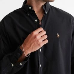 Button-down shirt by Urban Renewal featuring an upcycled Polo Ralph Lauren top updated with an overdyed wash effect. This modern shirt was created by Urban Renewal from unique vintage and deadstock items found around the world. Though similar in style to what you see here, each upcycled item is one-of-a-kind and may vary from piece to piece.
