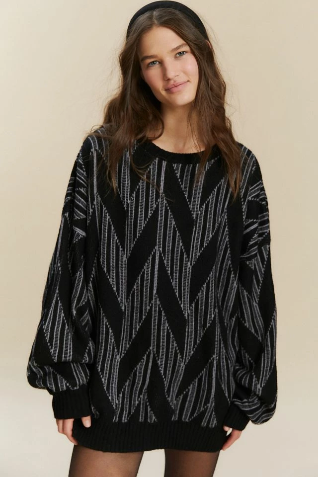 Oversized fit sweater with a unique allover pattern. Pullover crew neck style. The Urban Renewal team sourced the best of this vintage style from around the world. We’ll pick one just for you from our limited supply of one-of-a-kind designs. Each piece is unique and the one you receive will vary from what you see here.