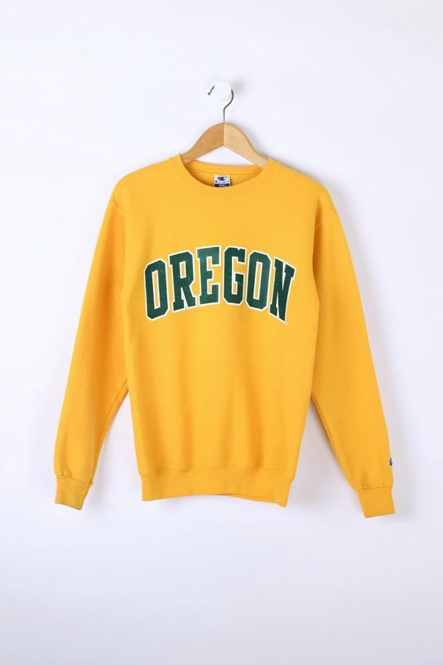This vintage 90s sweatshirt has a lettering graphic. The tag size is S – it measures 19.5″ across the chest laid flat, and it measures 26″ long shoulder-to-hem. This item is in good vintage condition with some small marks by the elbows.