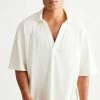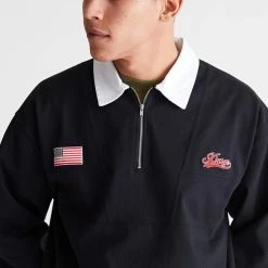 Rugby style shirt by XLARGE with applique accents at the chest. Oversized fit shirt with a partial zip at the front and contrast tab collar. Includes striped ribbing trims and an adjustable tie at the hem.