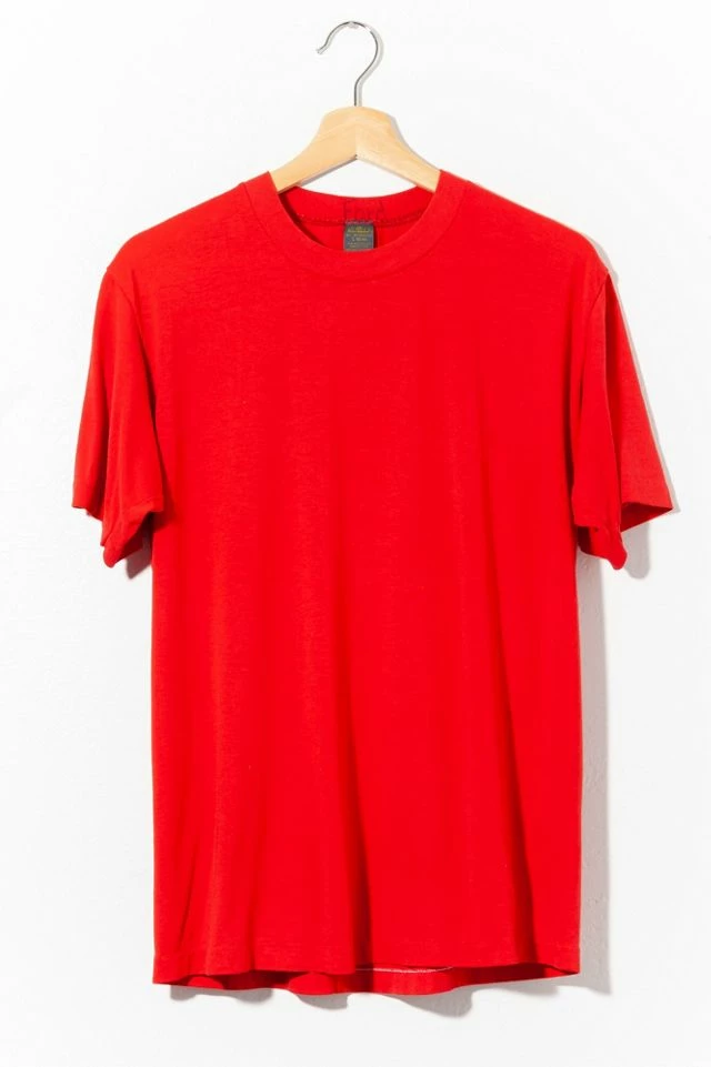 Vintage 1970s Blank Red Single Stitch Distressed T-Shirt by Russell