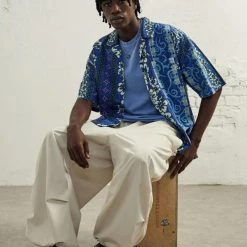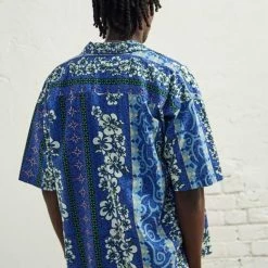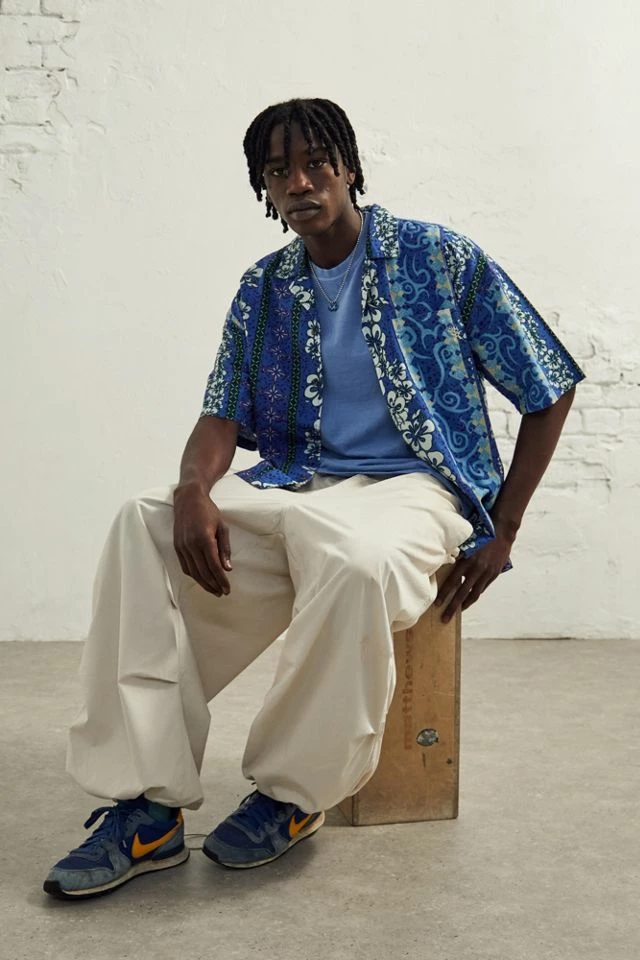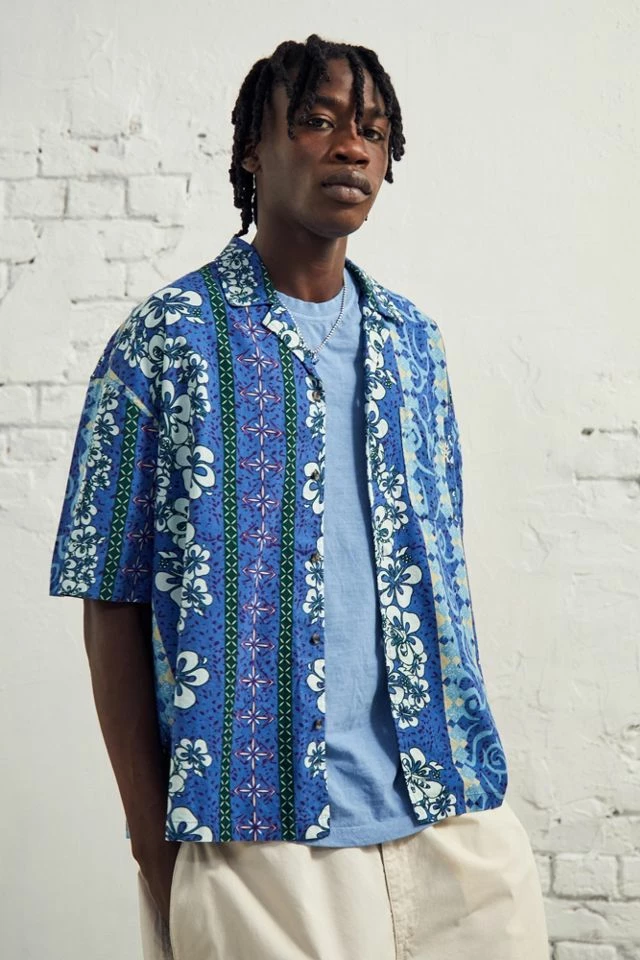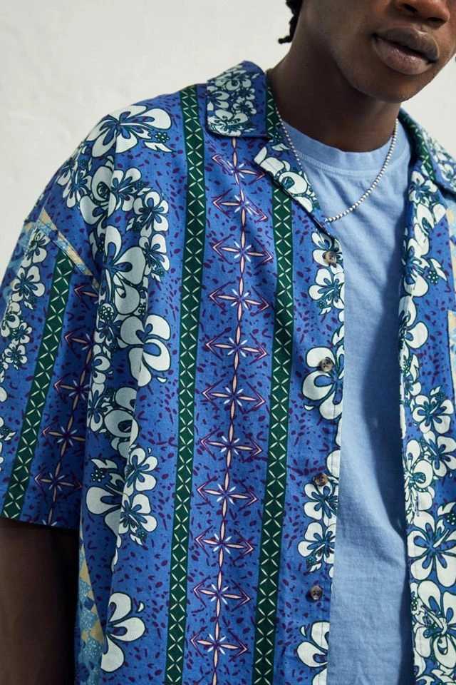 Staple shirt from UO with a spread collar, button placket, short sleeves and a floral pattern.