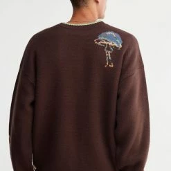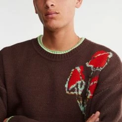 Crew neck sweater by Urban Outfitters. Topped with an allover flower pattern. Cotton knit pullover finished with striped ribbing trims.