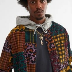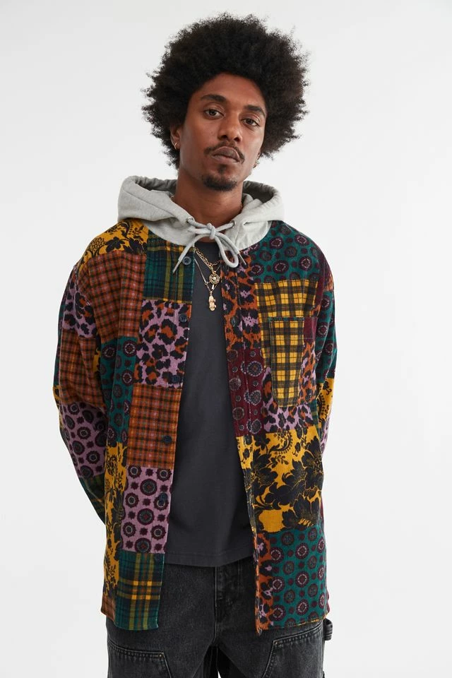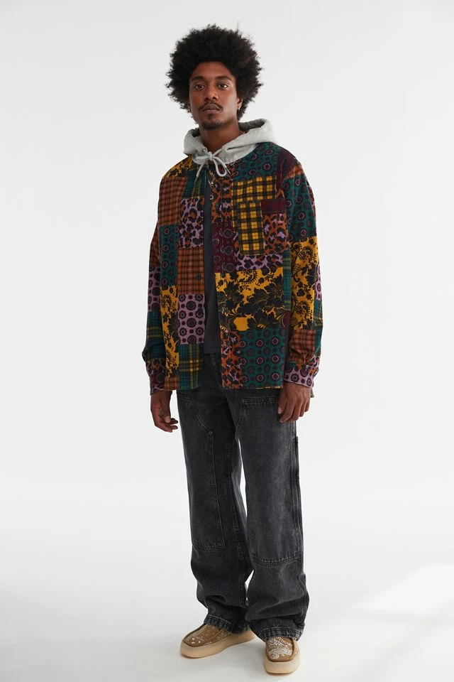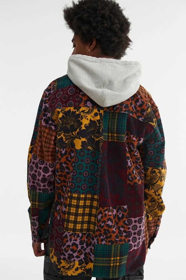 Overshirt by Urban Outfitters in a cotton cord fabrication with an allover pattern and fitted with a contrast adjustable hood.