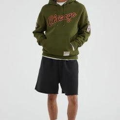 Top 10 ⭐ Men’s Mitchell & Ness Chicago Bulls NBA Script Hoodie Sweatshirt Olive 🌟