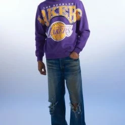 Promo 🤩 Men’s Mitchell & Ness NBA Stretch Los Angeles Lakers Crew Neck Sweatshirt Purple ✔️